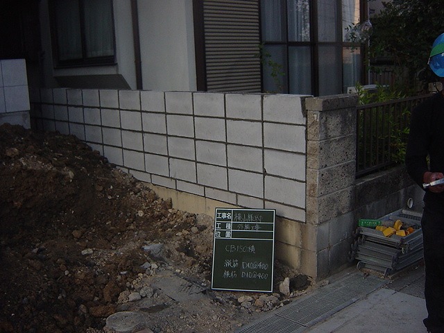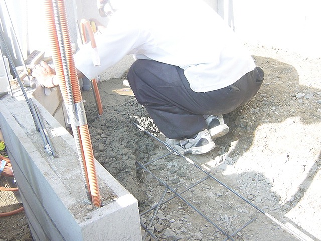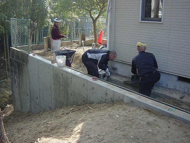 コンクリートで造る擁壁工事には、様々な分野の職人が関わります。